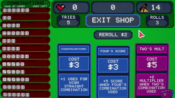 Pretty good game but I think you lean too much into the Balatro aspect. Yahtzee is about managing your categories and that falls kinda flat here since you never use up all of them in 5 rounds, especially since you can even upgrade the number of uses.